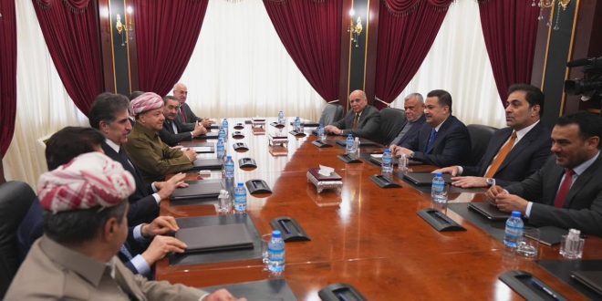 وقال مكتب رئيس الوزراء في بيان ، إن “السوداني التقى اليوم في مدينة أربيل، رئيس الحزب الديمقراطي الكردستاني مسعود بارزاني، بحضور وفد الإطار التنسيقي المرافق له الذي ضم؛ الأمين العام لمنظمة بدر هادي العامري، ورئيس ائتلاف الأساس محسن المندلاوي، والأمين العام للإطار عباس راضي”.