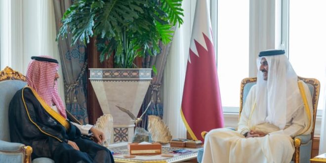 وأجرى وزير الخارجية السعودي زيارة على رأس وفد من المملكة، الثلاثاء، إلى قطر، حيث استقبله الشيخ تميم بن حمد، بمكتبه في الديوان الأميري.