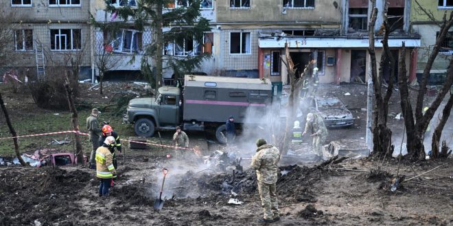 وكتب زيلينسكي في برقية على تيليغرام: “اليوم، استخدمت روسيا كل أنواع الأسلحة تقريبا في ترسانتها”، وشملت صواريخ كينغال، وصواريخ إس-300، وصواريخ كروز، وطائرات بدون طيار، وأطلقت القاذفات الاستراتيجية صواريخ X-101/X-505”.