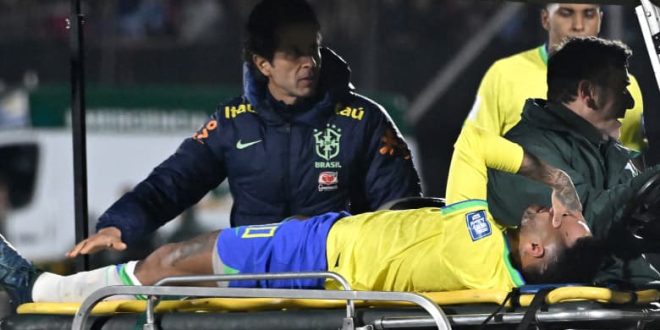 — تعرض اللاعب نيمار دا سيلفا للإصابة خلال مباراة منتخب البرازيل ونظيره الأوروغواي، على أرض ملعب الأخير، فجر الأربعاء، وضمن منافسات التصفيات المؤهلة لكأس العالم 2026، لتثير القلق عند الجماهير.