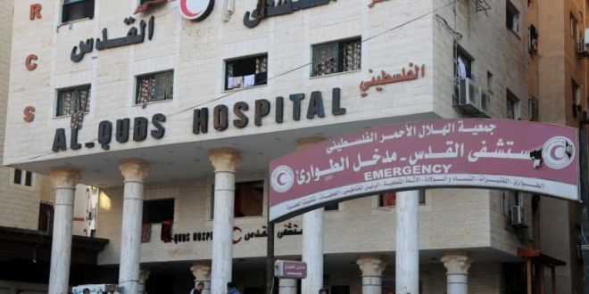 وقالت الجمعية إن “(إسرائيل) استهدفت محيط مستشفى القدس في قط اع غ-ز ة بصاروخين، على بعد حوالي 50 مترا من بوابة المستشفى”.