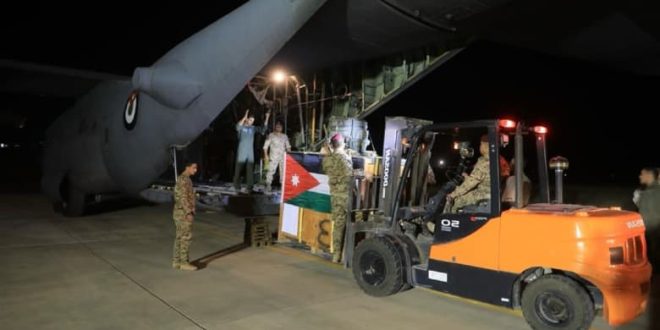 وقال مصدر عسكري مسؤول في القيادة العامة للقوات المسلحة الأردنية، إنه “”بتوجيهات ملكية سامية، قامت طائرة تابعة لسلاح الجو الملكي هذا اليوم بإنزال مساعدات طبية عاجلة في ساعات الليل بواسطة مظلات للمستشفى الميداني الأردني غ زه /76، والذي أوشكت إمداداته على النفاد نظرًا لتأخر إيصال المساعدات إلى قطاع غ زة عبر معبر رفح”، حسب بيان للجيش الأردني.