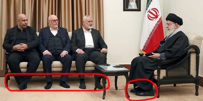 وأبرز نشطاء عدم ارتداء إسماعيل هنية والوفد المرافق لأحذية في حين يرتدي خامنئي حذاءه خلال اللقاء، وهو ما علق عليه المتحدث باسم رئيس الوزراء الإسرائيلي للعالم العربي، أوفير جندلمان، بتدوينة على صفحته بمنصة أكس (تويتر سابقا) قائلا: “زعيم ح-م-اس هنية ورفاقه الإرهابيون ذهبوا إلى طهران ليتلقوا الأوامر من سيدهم خامنئي ولكنه أذلهم وأجبرهم على خلع أحذيتهم بينما هو كان يرتدي حذاءه.. ح-م-اس دمرت قطاع غ-زة في خدمة عدو العرب إيران”.