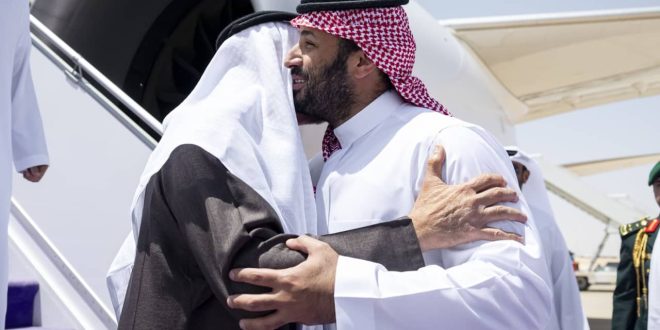 ووصل الشيخ محمد بن زايد إلى السعودية في “زيارة أخوية” وكان ولي العهد السعودي باستقباله في مطار الملك خالد الدولي.