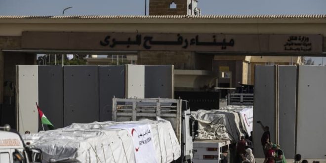 رصد صحفي في شبكة CNN دخول ما لا يقل عن 14 شاحنة مساعدات إغاثة، برعاية الهلال الأحمر المصري والأمم المتحدة، إلى قطاع غزة من مصر عبر معبر رفح في وقت متأخر من مساء الأحد.