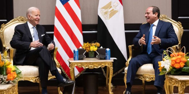 وأكد السيسي وبايدن ضرورة “تسريع وزيادة المساعدات المتدفقة إلى غزة ابتداء من اليوم ومن ثم بشكل مستمر، وناقشا أهمية حماية أرواح المدنيين، واحترام القانون الإنساني الدولي، وضمان عدم تهجير الفلسطينيين في غزة إلى مصر أو أي دولة أخرى”.