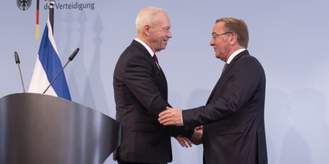 وقال وزير الدفاع الألماني بوريس بيستوريوس للصحفيين في مؤتمر صحفي مشترك مع نظيره الإسرائيلي يوآف غالانت في برلين إن توقيع الاتفاقية التي تُعد الأكبر في تاريخ إسرائيل وصناعتها الدفاعية، كان “يوما تاريخيا لكلا البلدين”.