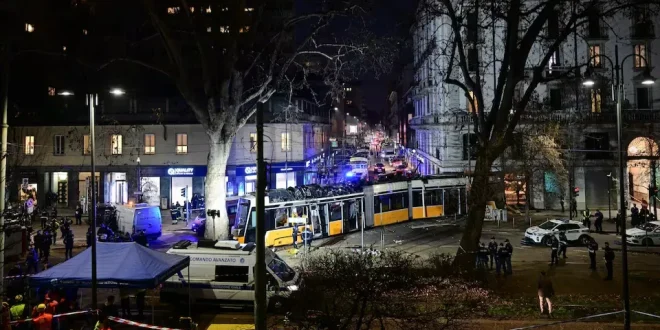 آخرين إثر خروج عربة ترام عن مسارها وسط ميلانو.