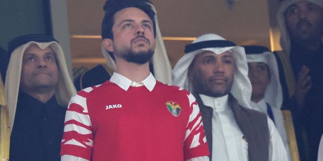 تداول نشطاء على مواقع التواصل الاجتماعي مقاطع صور وفيديو لولي العهد الأردني، الأمير الحسين بن عبدالله الثاني، خلال مباراة منتخب بلاده أمام المنتخب القطري بنهائي بطولة كأس آسيا، السبت.