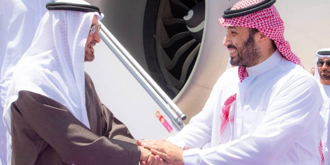 وبحث الشيخ محمد بن زايد آل نهيان مع الأمير محمد بن سلمان “العلاقات الأخوية الراسخة ومختلف جوانب التعاون الإستراتيجي والعمل المشترك بين البلدين”، وفقا لوام.