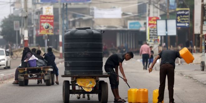 وقال غنيم إن غزة حصلت على 60 ألف لتر فقط من المياه، السبت ، إن تغطية الاحتياجات الأساسية لـ 2.3 مليون شخص يعيشون في القطاع يتطلب 33 مليون لتر يوميًا.