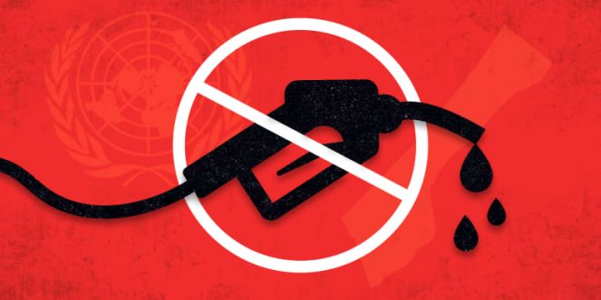 وتقول منظمة الأمم المتحدة إن غزة تحتاج إلى ما لا يقل عن 160 ألف لتر من الوقود يوميًا لتوفير الاحتياجات الأساسية. تحتاج غزة إلى ما لا يقل عن 160,000 لتر (42,267 عالون) من الوقود يوميًا من أجل توفير الضروريات الأساسية مثل المستشفيات والمخابز، وفقًا لجولييت توما، المتحدثة باسم وكالة الأمم المتحدة لإغاثة وتشغيل اللاجئين الفلسطينيين في الشرق الأدنى.