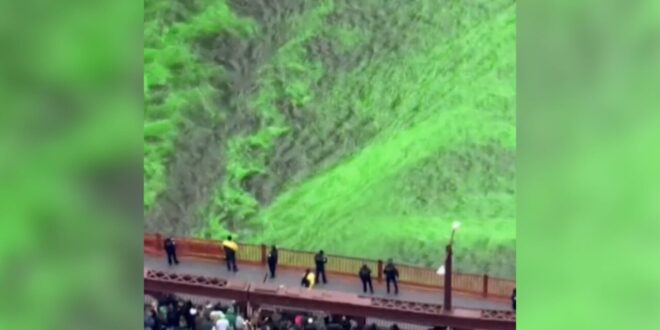 تجمعت حشود غفيرة على طول الواجهة المائية لمدينة شيكاغو الأمريكية لمشاهدة نهر شيكاغو يكتسي باللون الأخضر وهذا التقليد يعود تاريخه إلى ستينيات القرن الماضي وذلك للاحتفال بيوم القديس باتريك 2026.