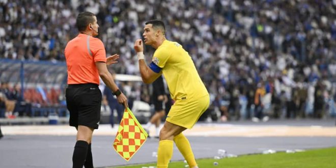 لم يكن اللاعب كريستيانو رونالدو راضياً على قرارات الحكم الكولومبي ويلمار رولدان، الذي أدار مواجهة نادي النصر ومنافسه الهلال على أرض استاد الملك فهد الدولي، وضمن مباريات الدوري السعودي للمحترفين.