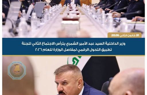 وزير الداخلية السيد عبد الأمير الشمري يترأس الاجتماع الثاني للجنة تطبيق التحول الرقمي لمفاصل الوزارة للعام 2026