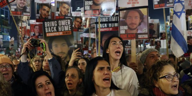 تجمع حوالي 120 ألف شخص في تل أبيب للمشاركة في مسيرة بمناسبة مرور 100 يوم على الحرب الإسرائيلية ضد حركة “ح-ما-س”، وفقا لمنتدى أسر الرهائن والمفقودين الذي نظم المسيرة.