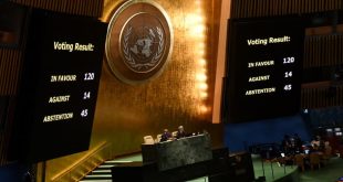 أقرت الجمعية العامة للأمم المتحدة ، بأغلبية ساحقة، مشروع قرار قدمه الأردن يدعو إلى وقف إطلاق النار بين إسرائيل و حركة “حماس”، في مواجهة اعتراض شديد من الولايات المتحدة وإسرائيل. وصوتت 120 دولة لصالح مشروع القرار مقابل 14 دولة وامتنعت 45 دولة عن التصويت، واندلع التصفيق في قاعة الجمعية عندما …